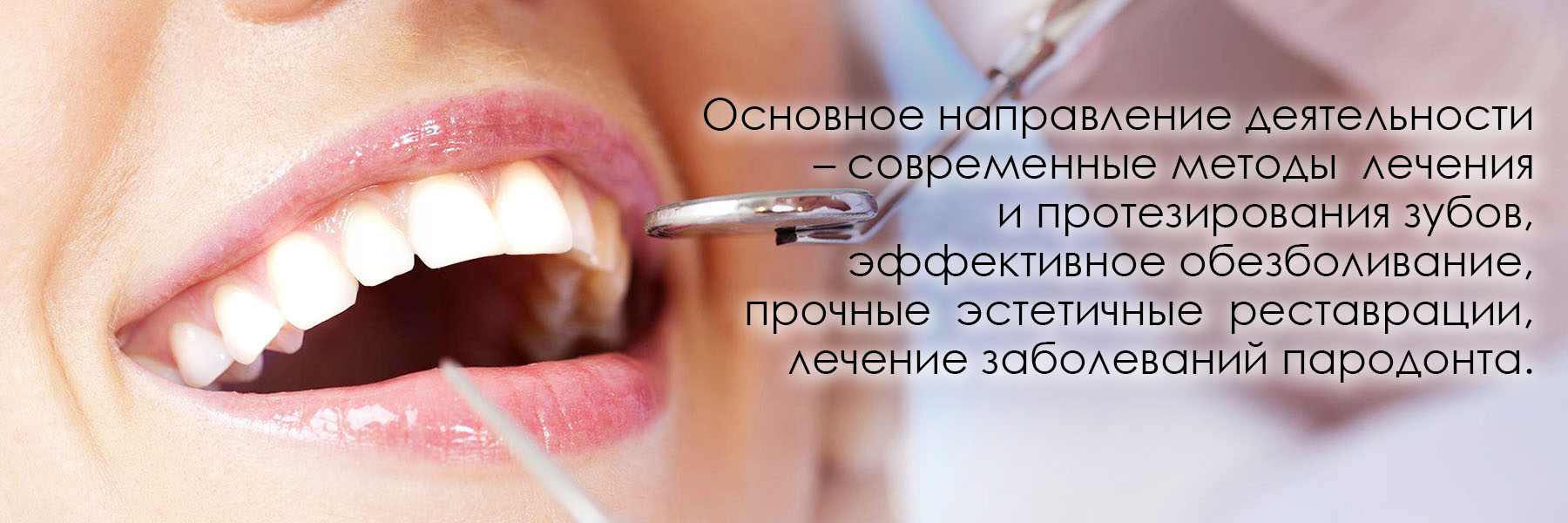 проведение высокоточной диагностики; профессиональная чистка; лечение всех видов кариеса; лечение пульпита и периодонтита; лечение заболеваний десен, слизистой оболочки полости рта;  восстановление разрушенных зубов; художественная реставрация формы, цвета, структуры зуба; профилактика заболеваний зубов.